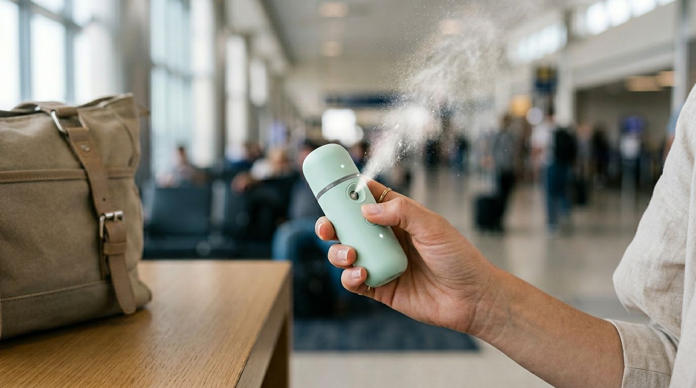 A long flight can leave skin feeling like a dry sponge. The same goes for heated hotel rooms, windy commutes, and desert climates. A nano mist sprayer is a small, rechargeable way to add a quick layer of hydration without splashing your face or ruining makeup.